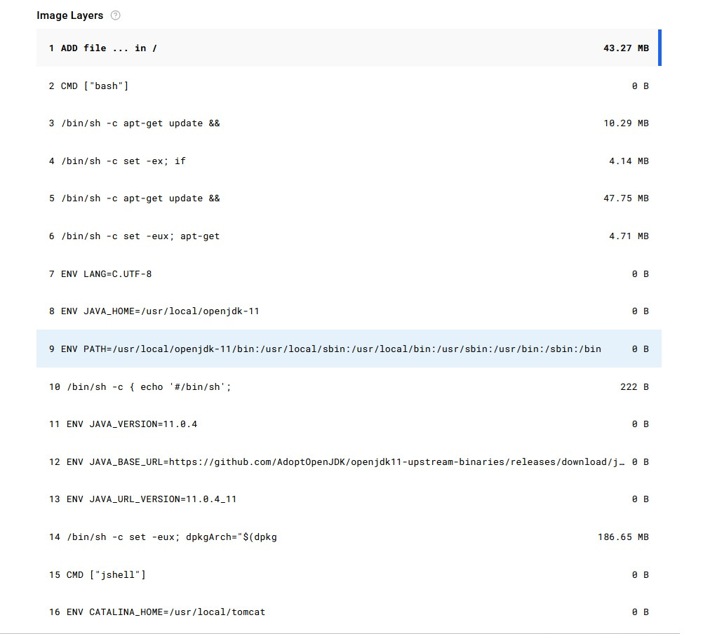 Lets take the SuperMario image that we used in the part 1 of the post. Click on ‘Tags’ → ‘Digest’ and you will see the image layers(i.e step by step sequential commands to be executed)